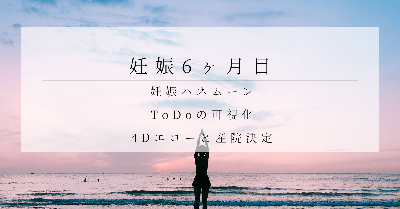 この6ヶ月目は、心身が比較的安定していて「妊娠ハネムーン」とも呼ばれる時期。幸せホルモンが高まっている今だからこそ、4Dエコーや産院の決定など大切なことを前向きに進めるのがおすすめです。
